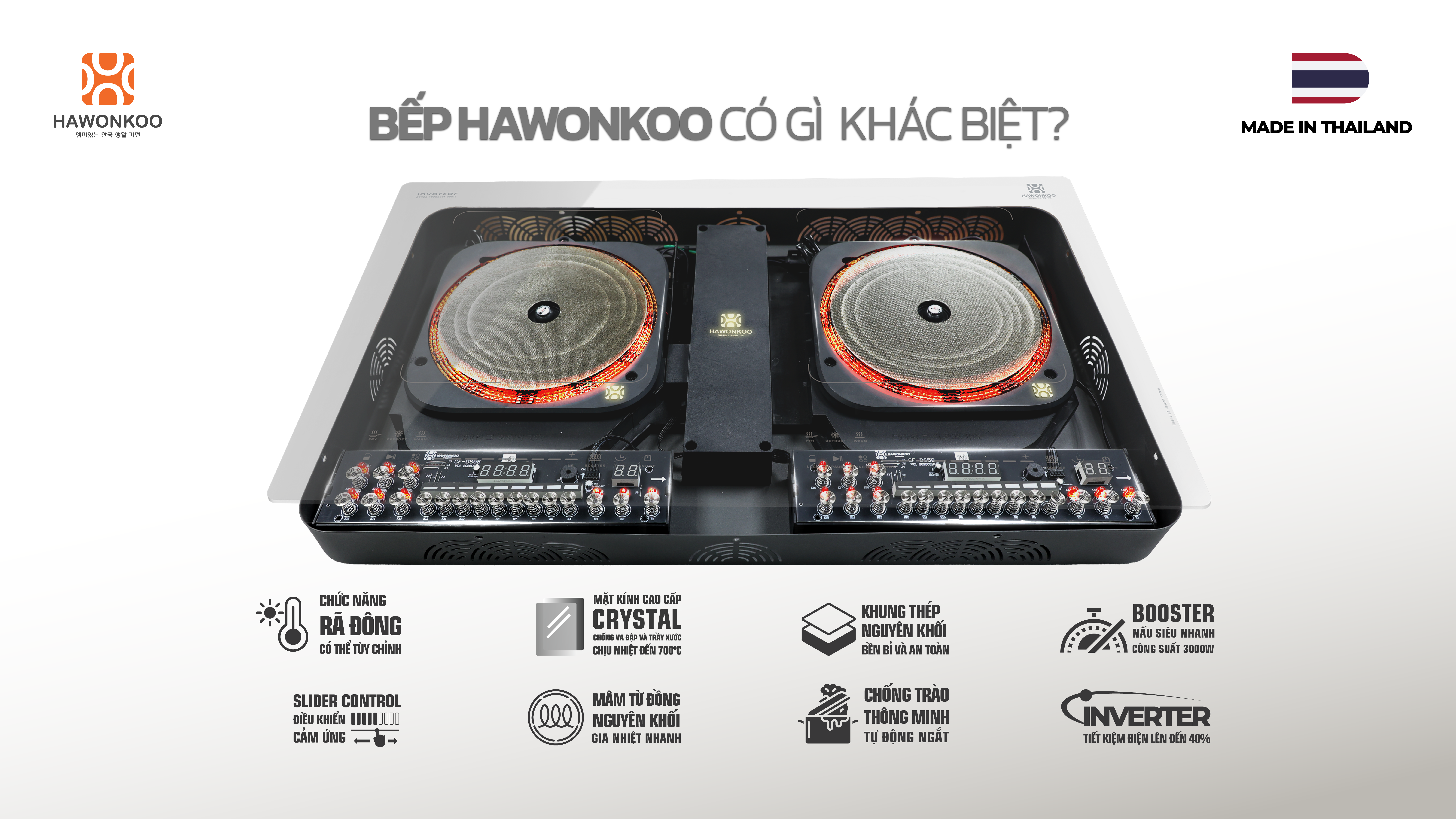Hawonkoo CEH-265 nổi bật với mặt kính cao cấp dòng Crystal của Hawonkoo, chịu sốc nhiệt đến 700°C và khung thép nguyên khối an toàn tuyệt đối. Mâm từ đồng nguyên chất gia nhiệt nhanh – tỏa nhiệt đều, kết hợp công nghệ Inverter tiết kiệm điện tới 40%. Điều khiển Slider Control nhạy bén, nhiều chế độ nấu thông minh: rã đông, chống trào, Booster 3000W… đảm bảo nấu ngon – nhanh – an toàn trong mọi không gian bếp hiện đại.