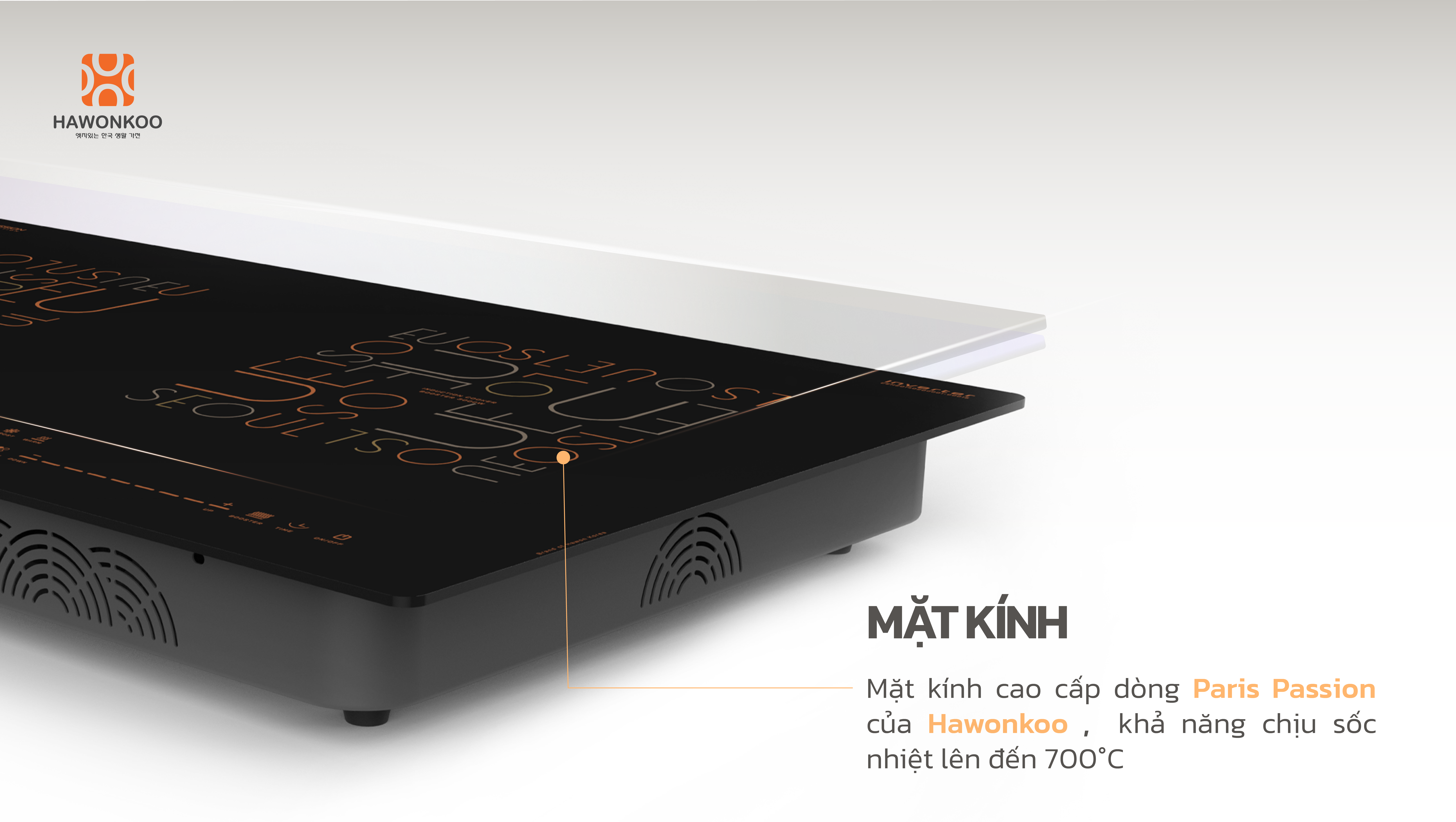 Bếp từ đôi Hawonkoo CEH-286 sử dụng mặt kính cao cấp dòng Paris Passion của Hawonkoo, được sơn phủ bằng công nghệ METALLO STELLARE – công nghệ sơn ô tô độc quyền từ Ý, thường áp dụng cho các dòng xe sang châu Âu. Thiết kế hoa văn tinh xảo lần đầu tiên xuất hiện trên sản phẩm Hawonkoo, mang đến vẻ đẹp sang trọng và khác biệt.