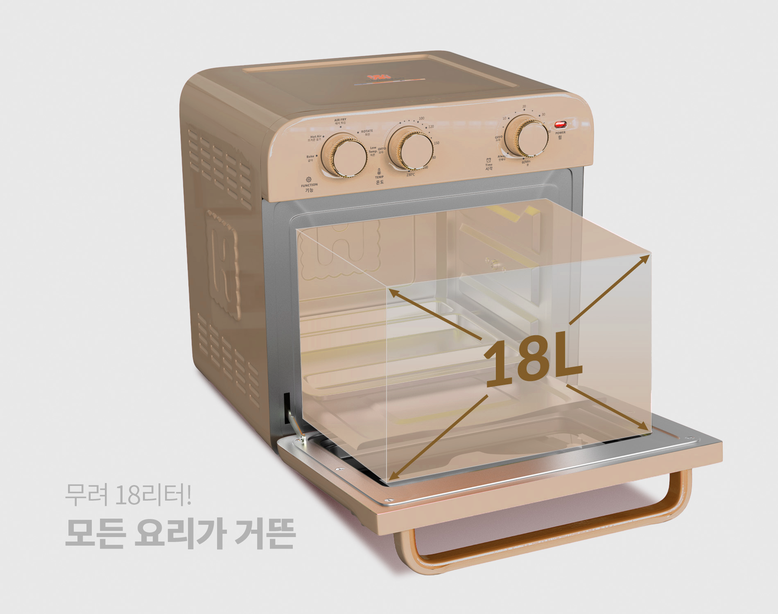 Nồi chiên không dầu Hawonkoo AFH-180 có dung tích cực lớn lên đến 18 lít, phần khoang chiên rộng rãi có thể quay gà, vịt, cá nguyên con hoặc chế biến nhiều loại thực phẩm cùng lúc.