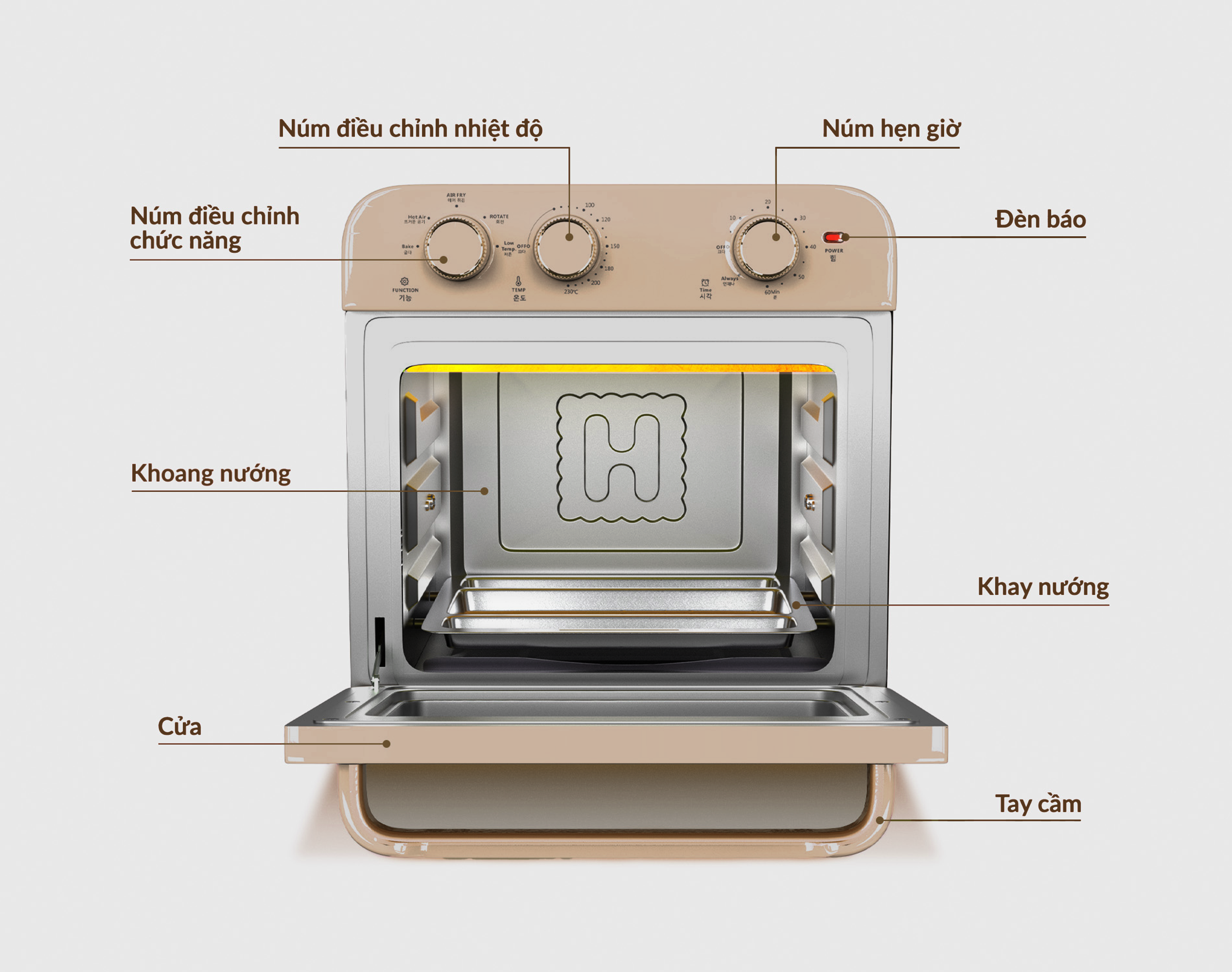 • Khay hứng: Thép tráng men Ceramic cao cấp, chịu nhiệt tốt, không phản ứng với thực phẩm.